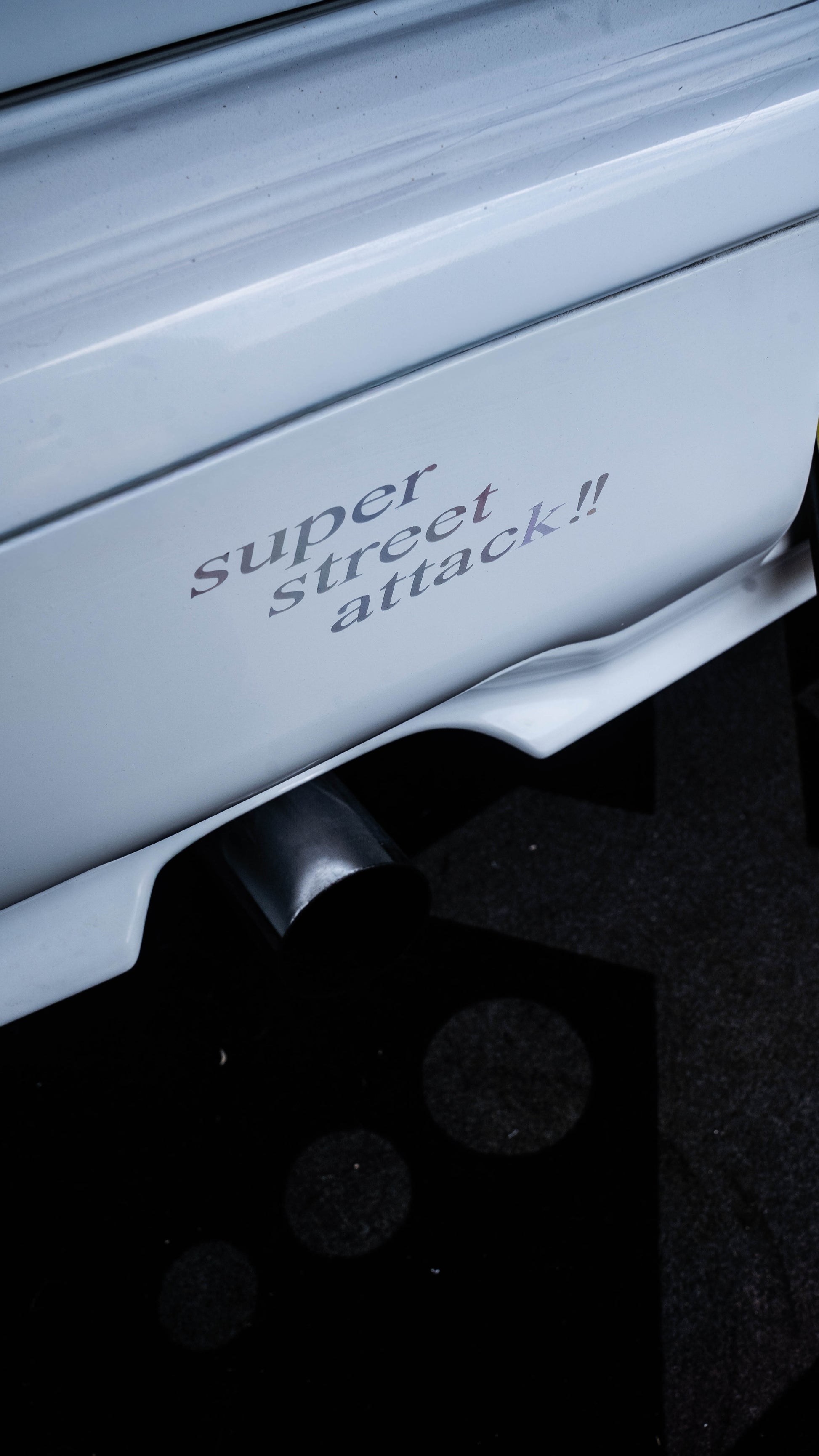 super street attack!! classic street style bumper or anywhere decal! above the exhaust is popular.